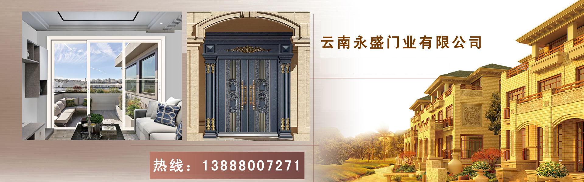云南永盛門業(yè)電話:13888007271,專業(yè)生產(chǎn)、批發(fā)昆明別墅大門、鋼銅門、云南衛(wèi)生間門、昆明推拉門、木門、庭院門、鑄鋁門、學(xué)校工程門、醫(yī)院門、衛(wèi)浴門、防盜門、庭院門、甲級(jí)門、防火門等各種中高檔門,本廠自產(chǎn)自銷,量大從優(yōu)!